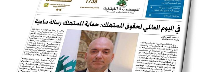 بمناسبة اليوم العالمي لحقوق المستهلك، اعدت وزارة الاقتصاد والتجارة عدد خاص من نشرة حماية المستهلك سيتم توزيعه مجانا مع صحيفة "النهار" اليوم الاثنين الواقع في...